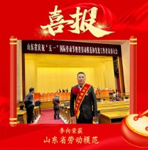 喜报!热烈祝贺中泰信实业李向荣获山东省劳动模范。