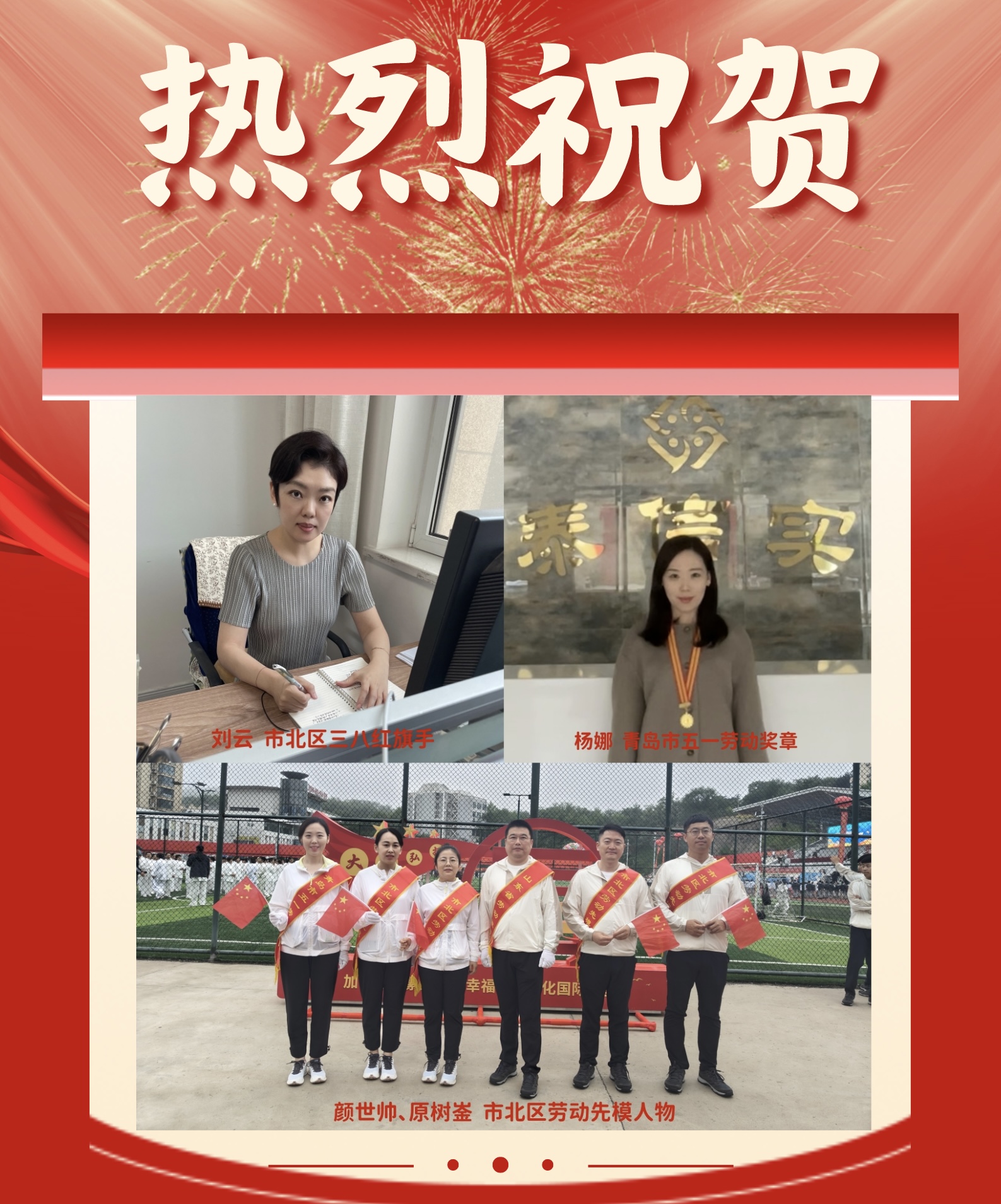热烈祝贺公司杨娜、刘云、原树崟、颜世帅荣获区市级荣誉